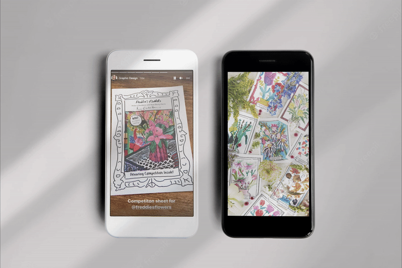 For the Freddie’s Flowers annual drawing competition, I created a folding perforated card which had information about the event and a space for people to draw their favourite flower arrangement. The prize for the winner was an original painting by the artist Rose Electra Harris who selected the winner for the competition.